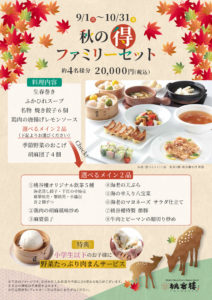 夏休みファミリーセットに引き続き、9/1~10/31は秋のファミリーセットを販売いたします。